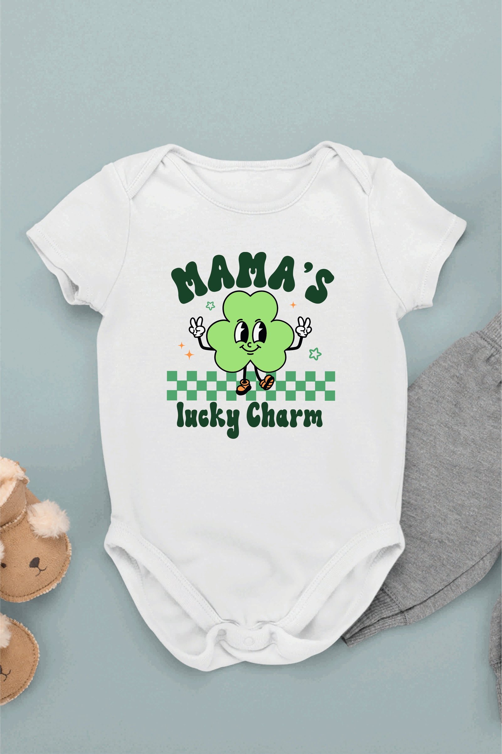 Crafted with love, this Mama’s Lucky Charm Baby Bodysuit is a must-have for your little one. Made with soft and comfortable fabric, this bodysuit features a charming design that showcases your baby’s luck. Perfect for any occasion, it’s a lucky addition to your baby’s wardrobe.