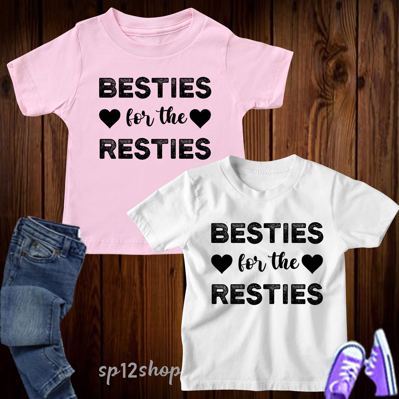 “Show off your friendship with Matching Best Friend Shirts! With the fun and playful “besties for the resties” design, these shirts are a must-have for any best friends. Perfect for kids, these shirts are a stylish way to celebrate your bond. Get yours today!”
