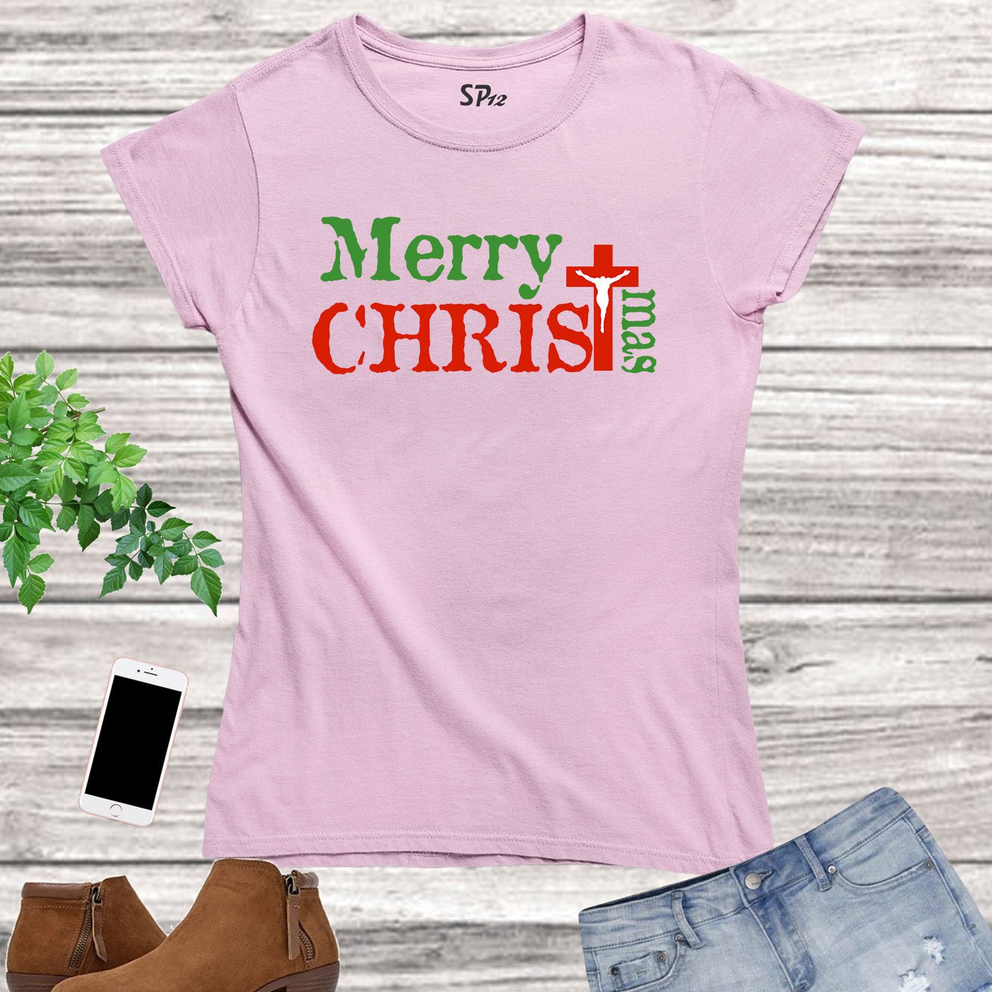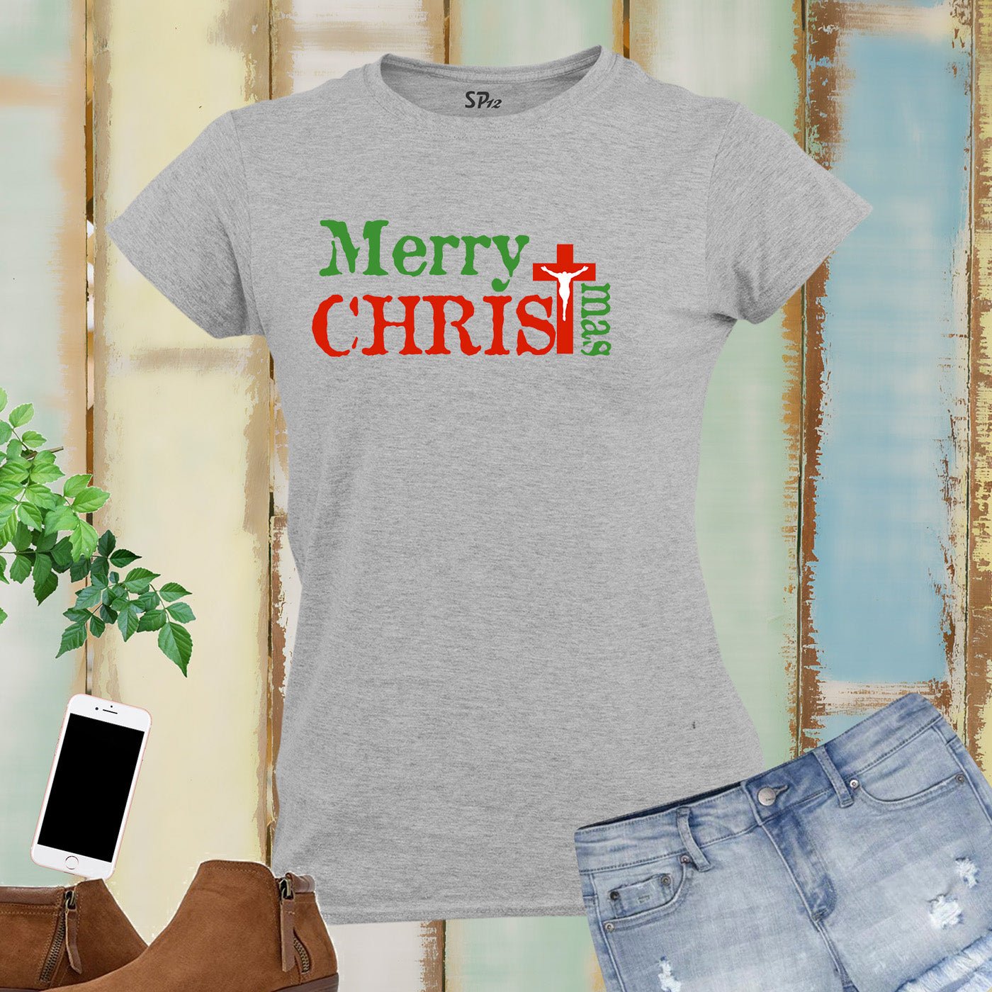 Merry Christmas Cross Women T Shirt
