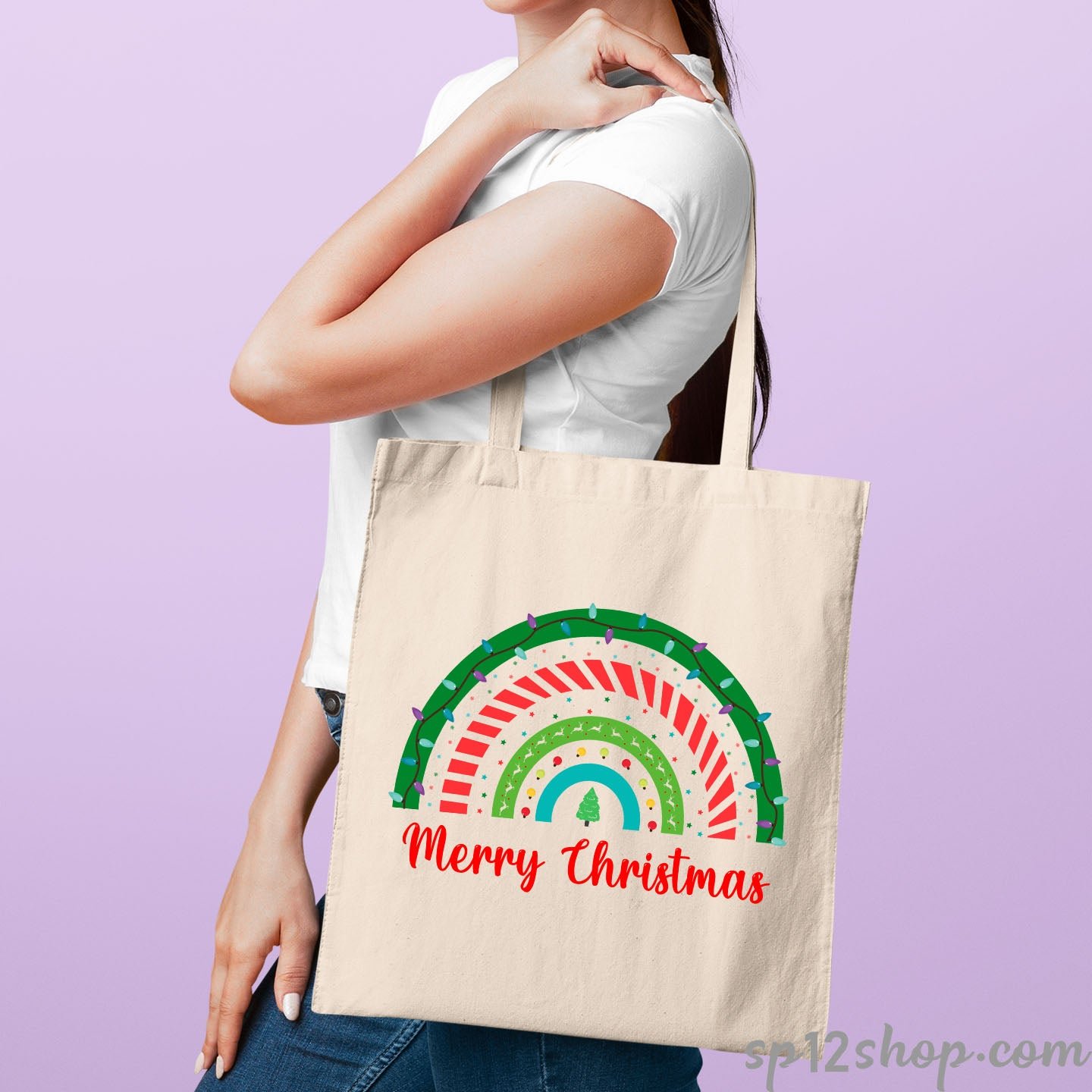 Merry Christmas Rainbow Teacher Tote Bag Gift is made with pure cotton and natural look. This printed canvas tote bag is perfect for someone who care about the environment and want to keep the Earth and ocean clean. This cotton bag is made with pure cotton and cross stitching on handles to get a reliable and durable bag.