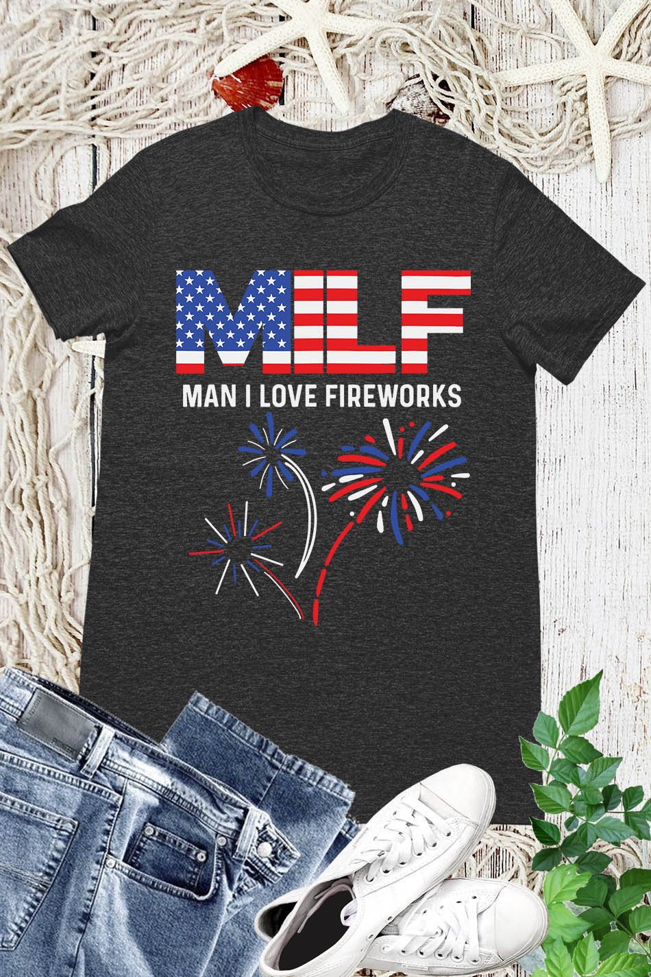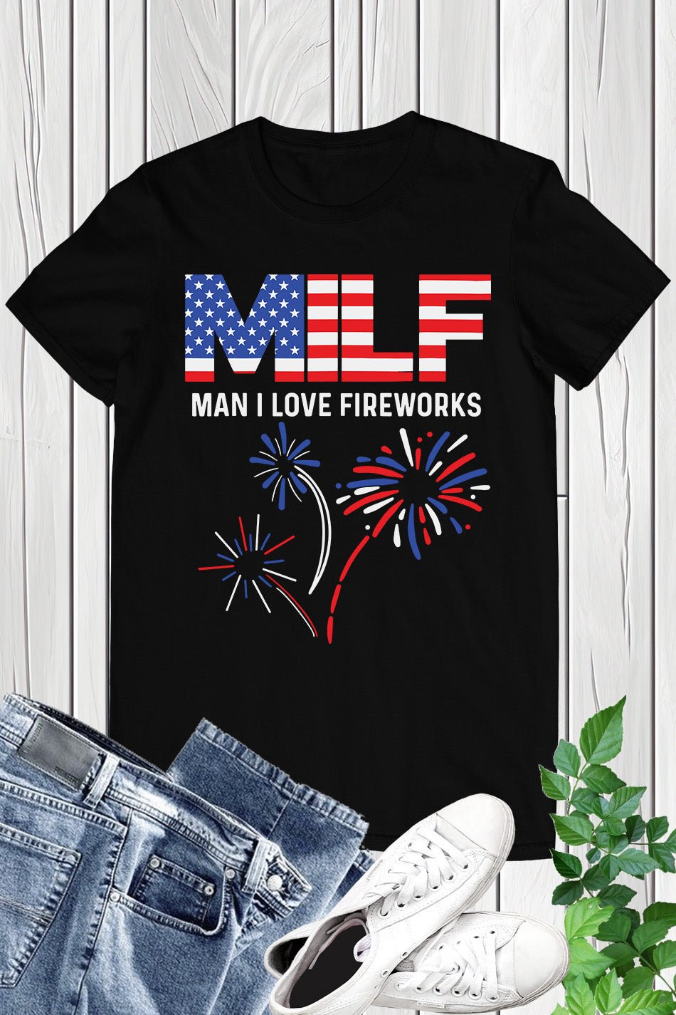 Show off your patriotism and love for fireworks with our MILF Man I Love Fireworks Patriotic Shirt. Made with high quality material, this shirt is comfortable and durable. Perfect for any 4th of July celebration, make a bold statement with this unique and eye-catching design.