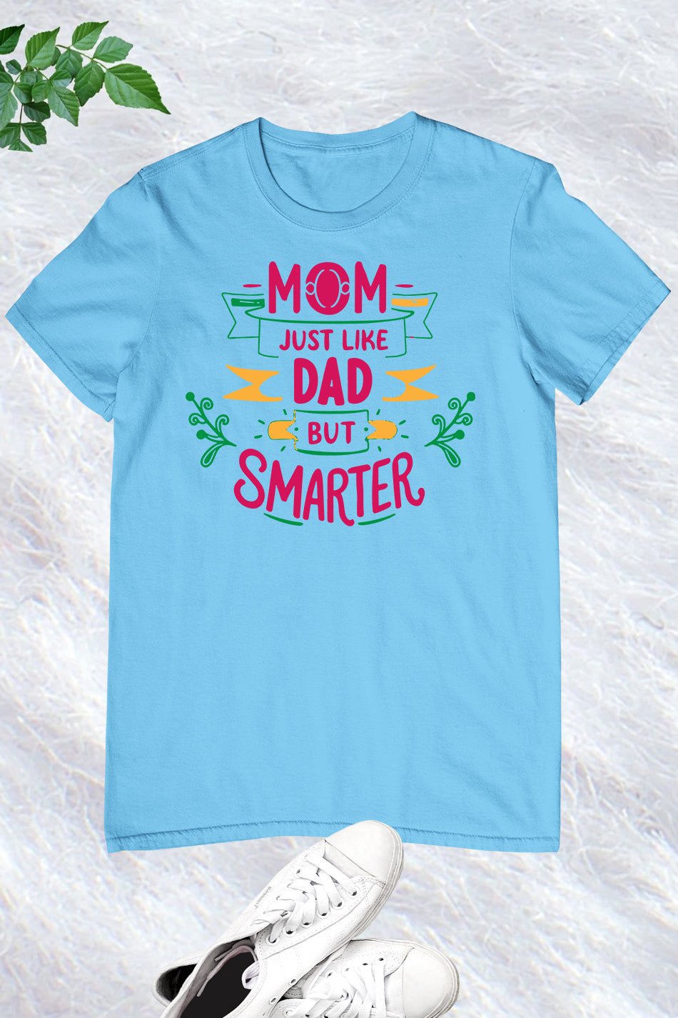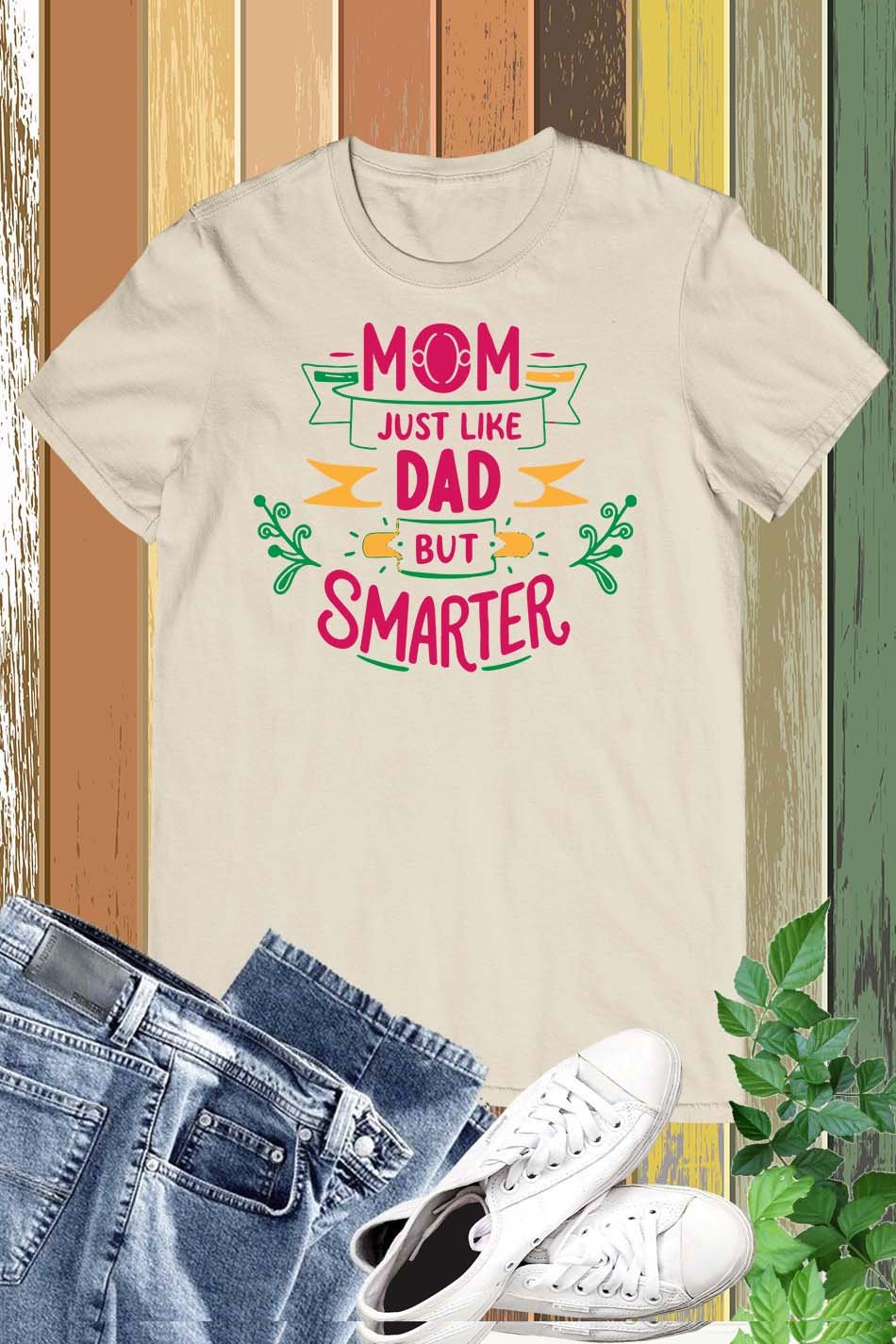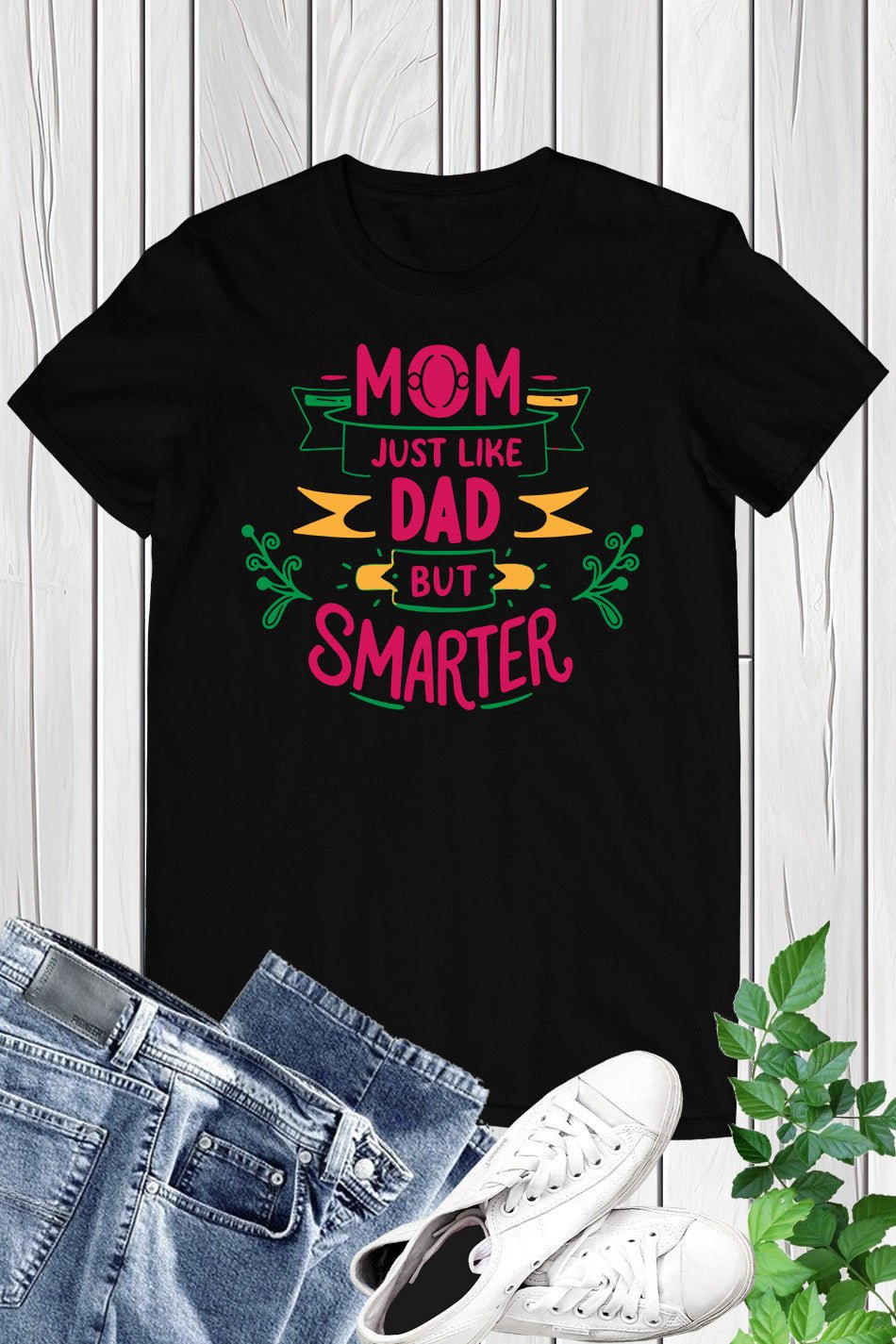 Celebrate the incredible intelligence and wit of mothers with the Mom Just Like Dad But Smarter T Shirt! This statement tee proudly displays the truth that moms are just as smart, if not smarter, than dads. Made with high-quality materials and a comfortable fit, this t-shirt is perfect for any mom who wants to show off their smarts and style. Show your appreciation for the amazing moms out there with the Mom Just Like Dad But Smarter T Shirt!