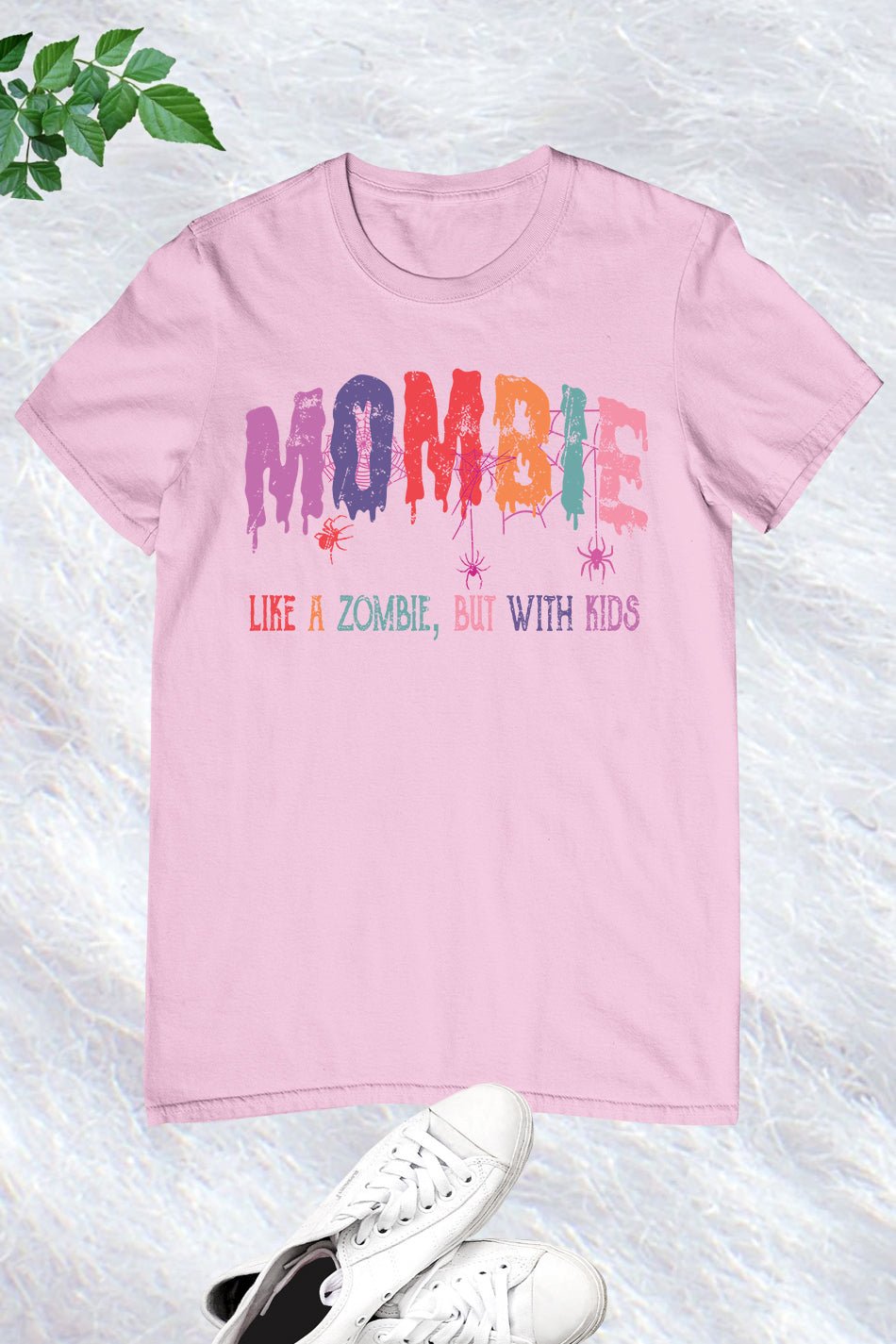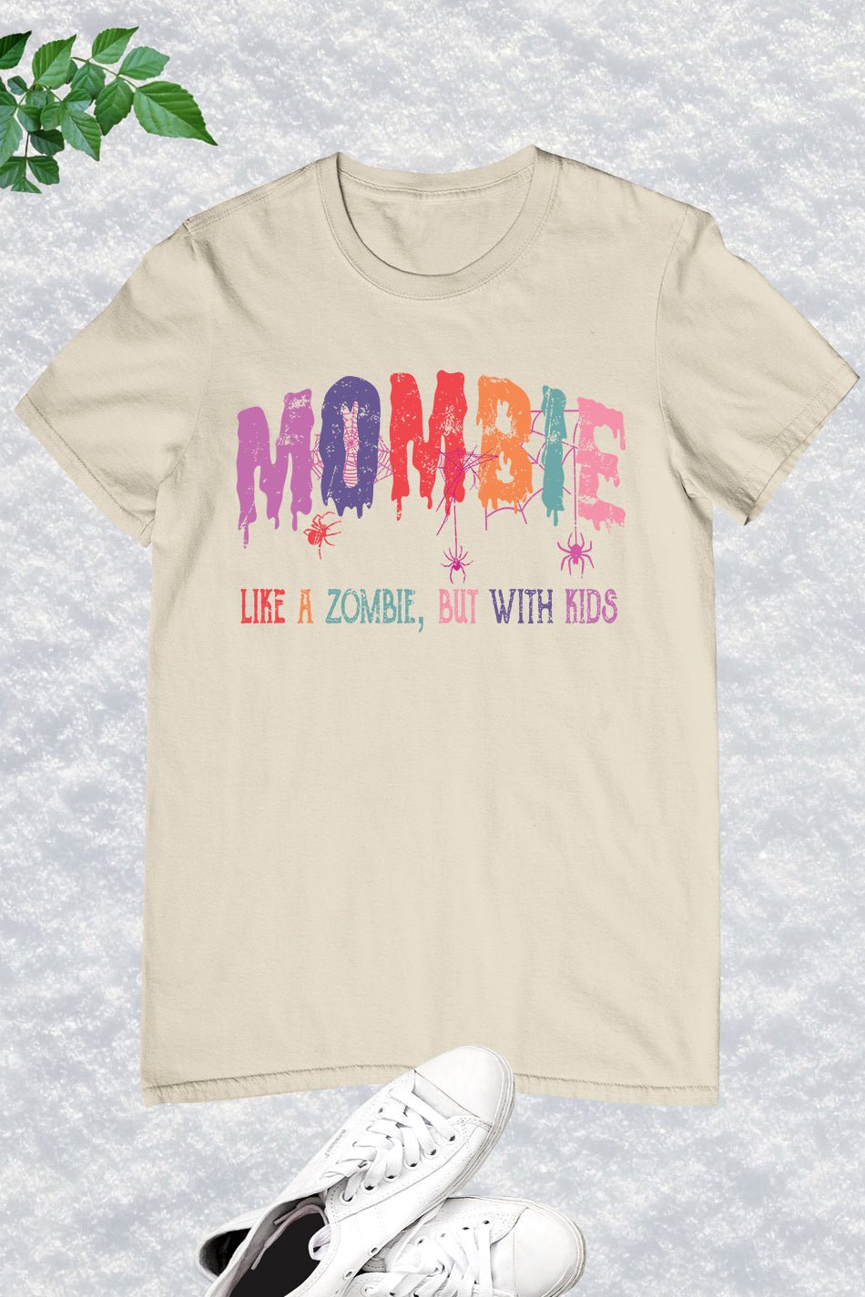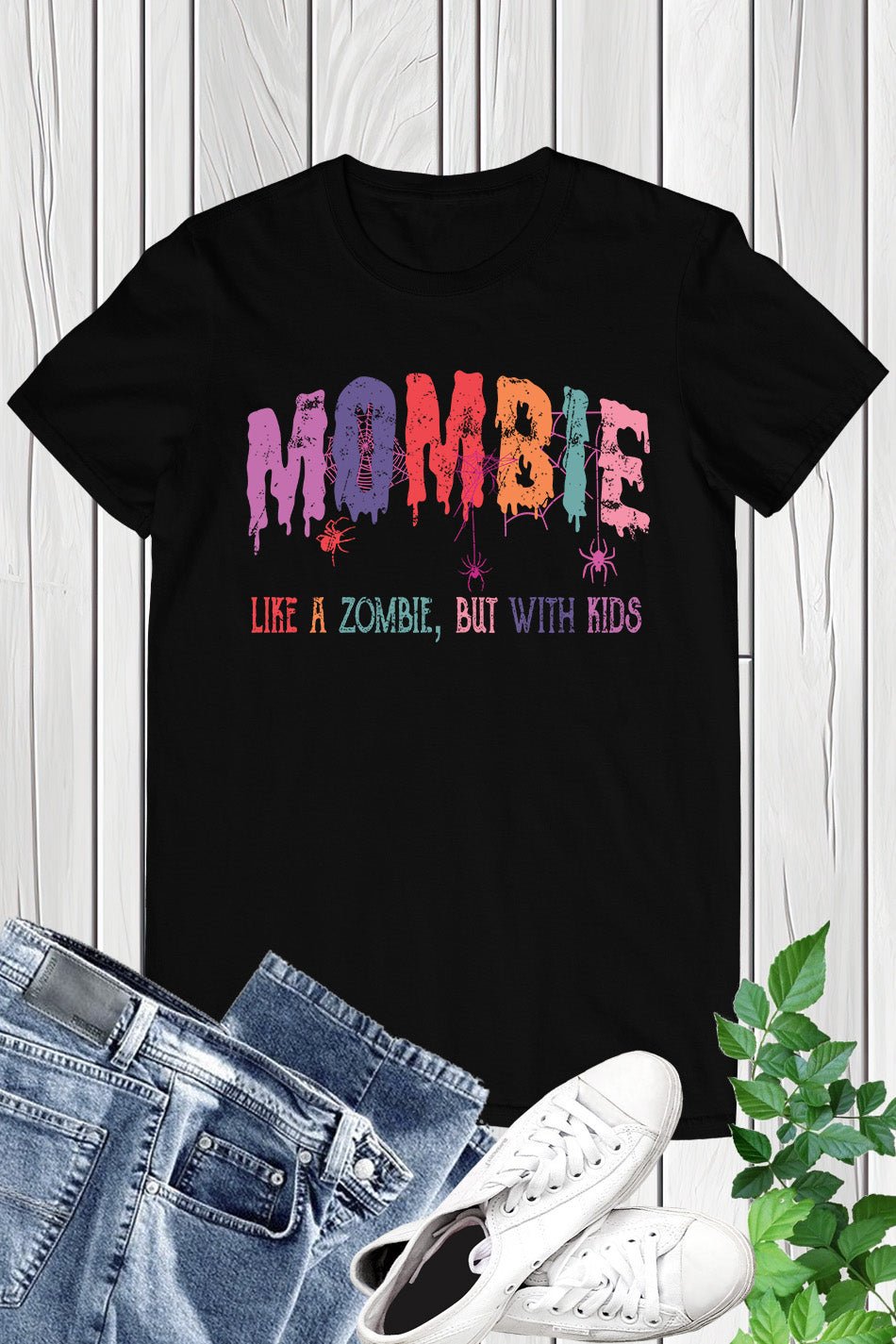 Introducing the Mombie Retro Halloween Ghost Spider Web Shirt. This stylish and spooky shirt features a retro design with a ghost and spider web graphic, perfect for Halloween. Made with comfortable fabric, it’s perfect for any mombie looking to add a touch of Halloween spirit to their wardrobe.