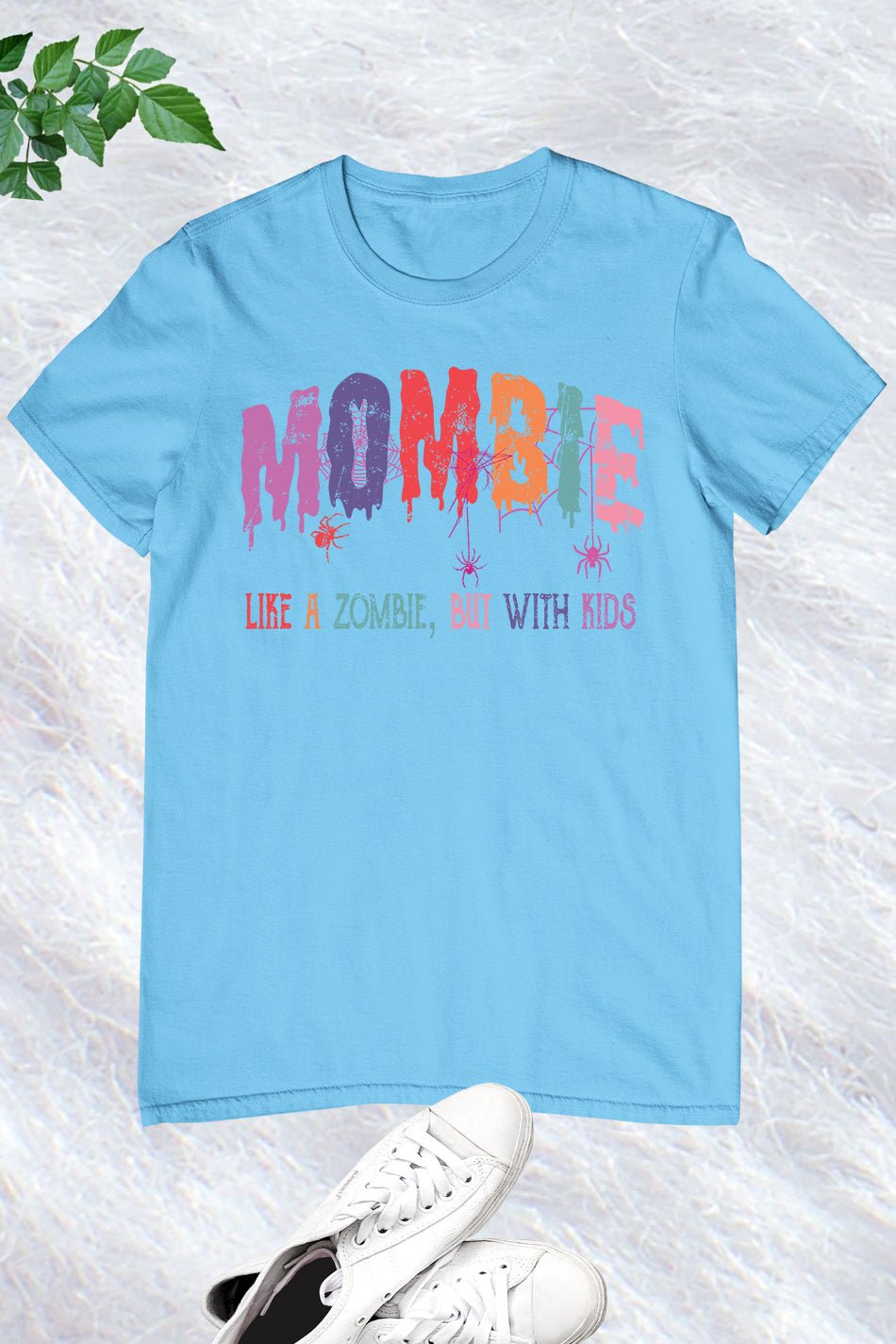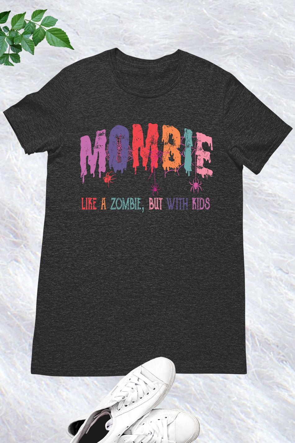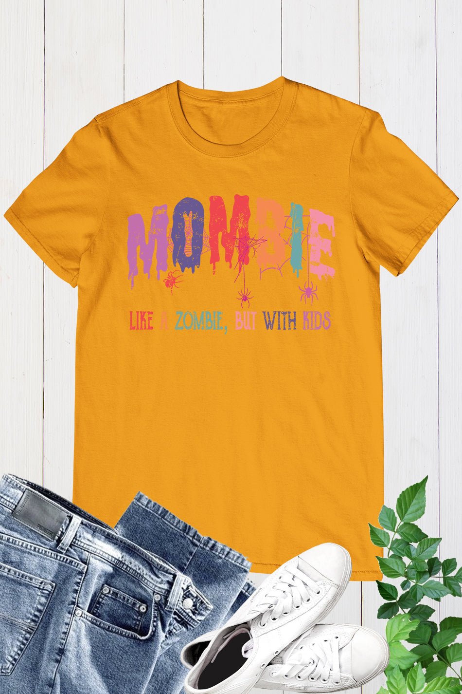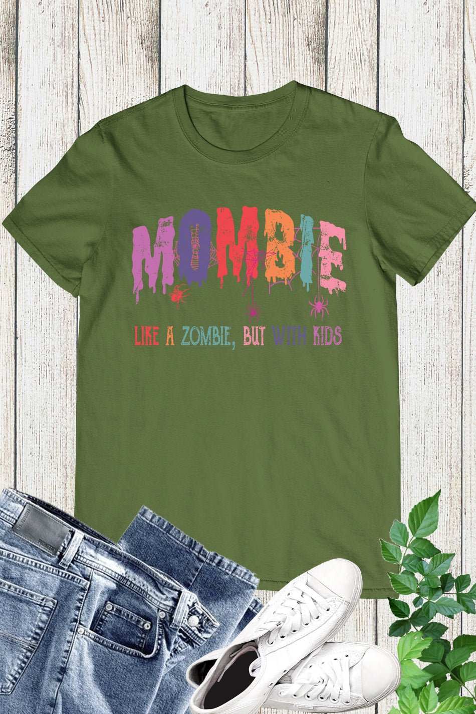 Introducing the Mombie Retro Halloween Ghost Spider Web Shirt. This stylish and spooky shirt features a retro design with a ghost and spider web graphic, perfect for Halloween. Made with comfortable fabric, it’s perfect for any mombie looking to add a touch of Halloween spirit to their wardrobe.