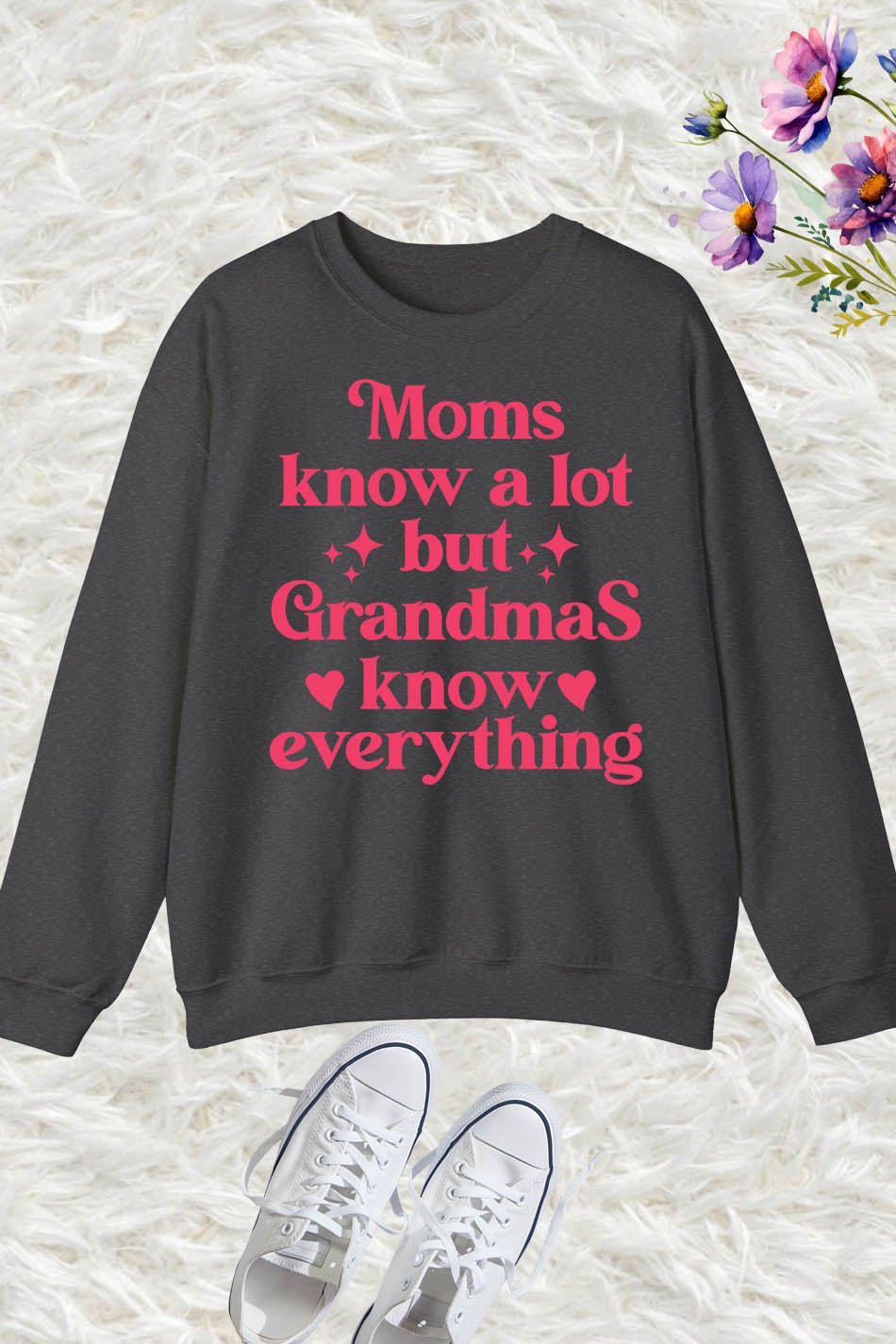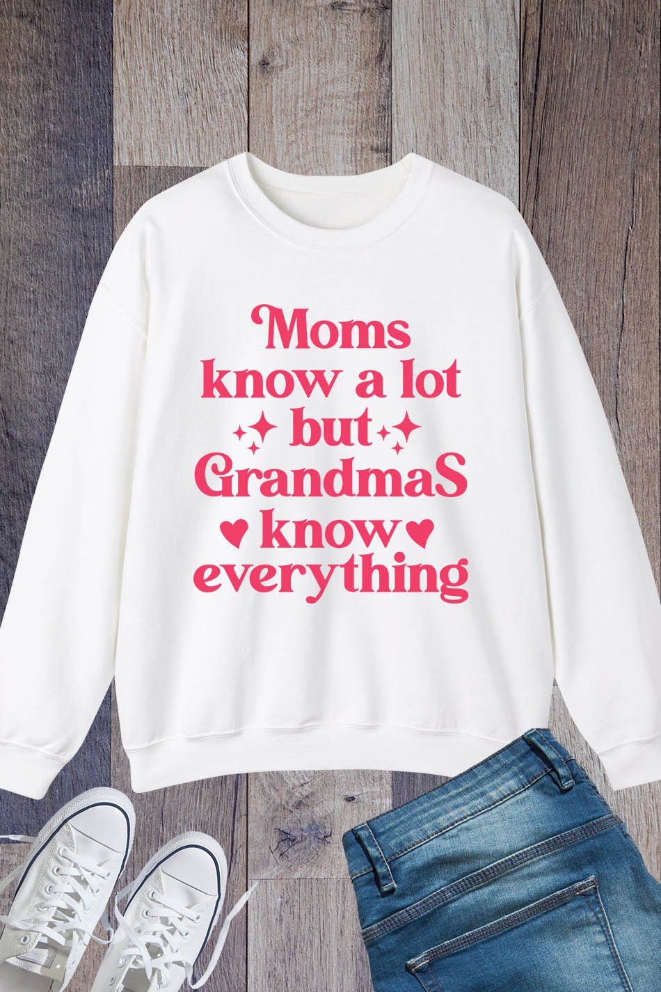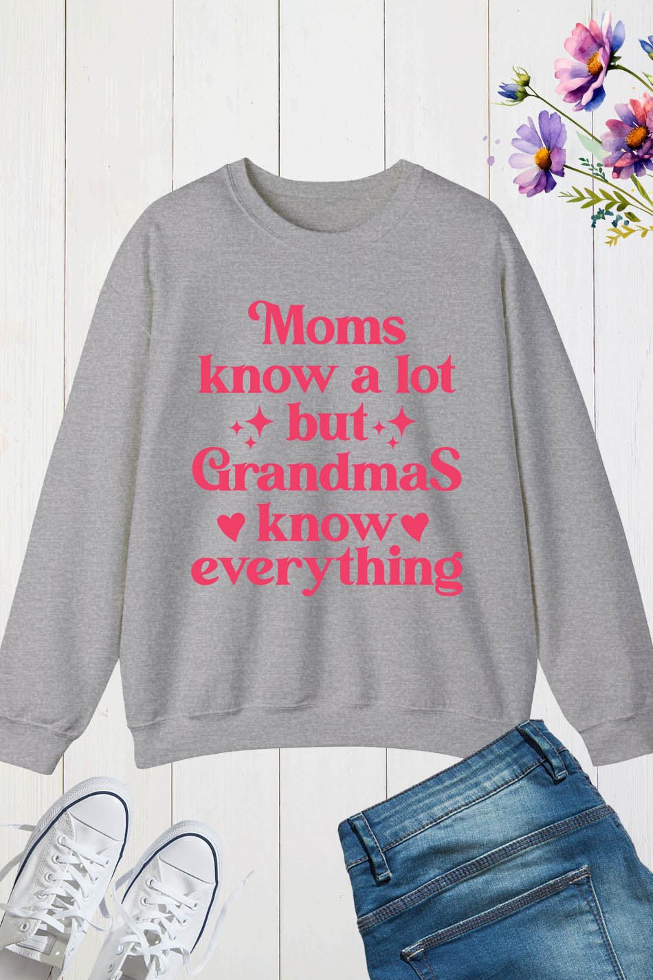 This Nana sweatshirt is perfect for any grandma who knows everything! With the charming phrase “Moms Know A Lot But Grandmas Know Everything” printed on the front, this shirt is a fun and stylish way to show off your wisdom. Made from comfortable fabric, it’s perfect for lounging or running errands.