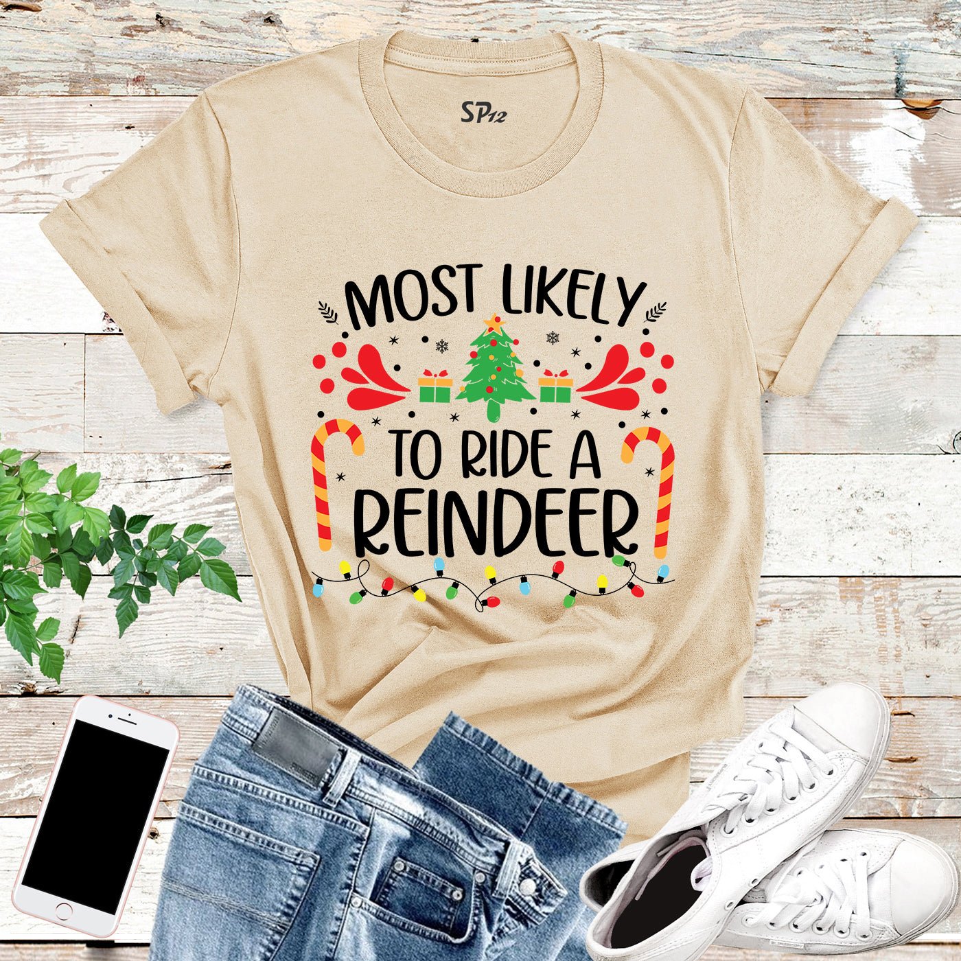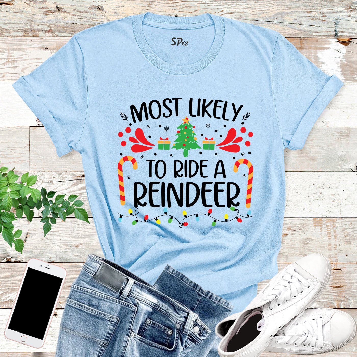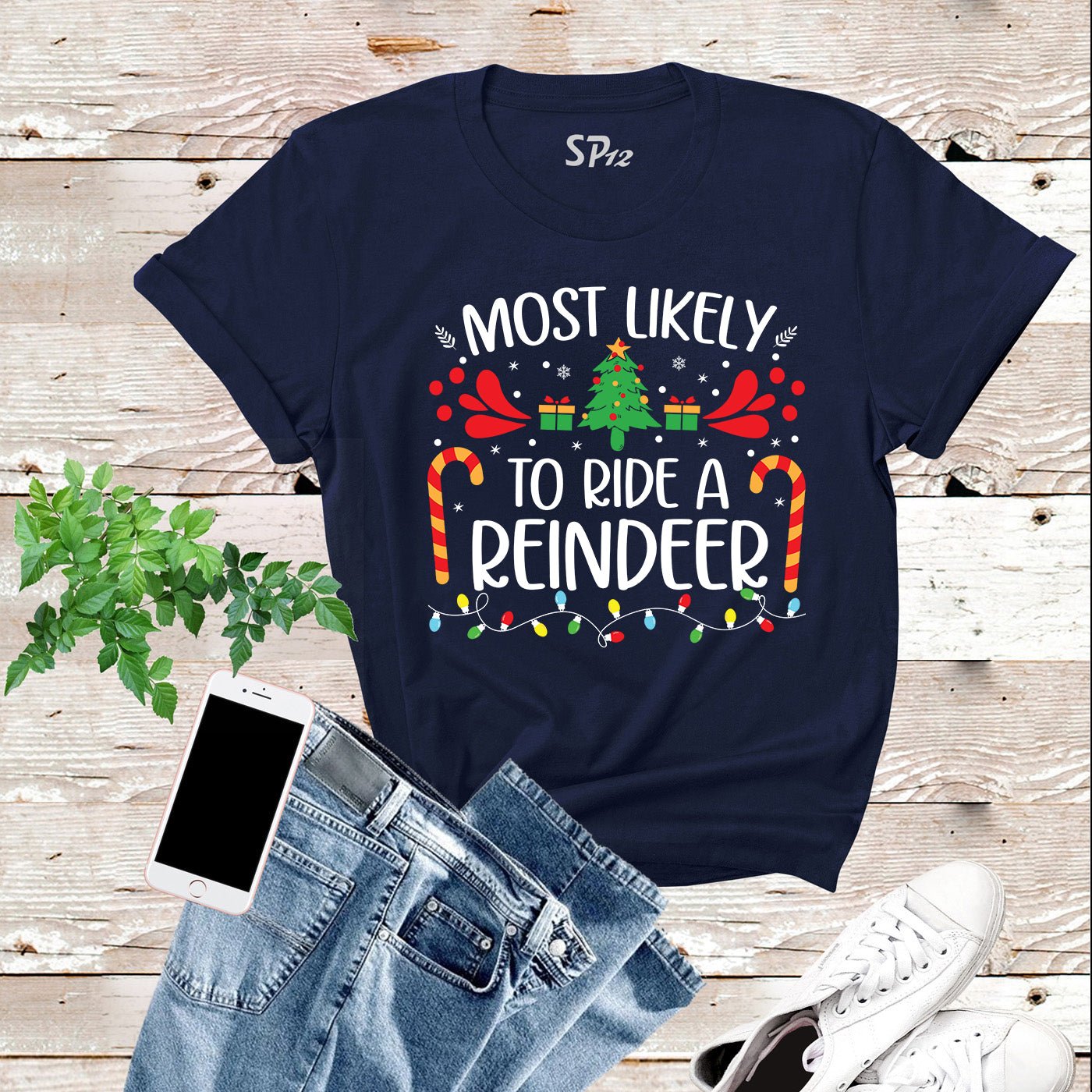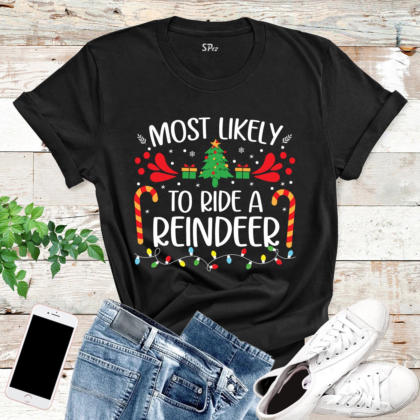 Most Likely to Ride a Reindeer Christmas T Shirt