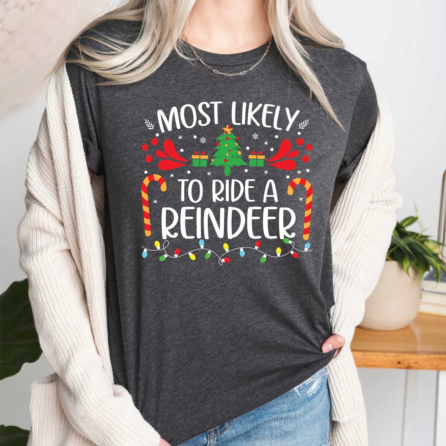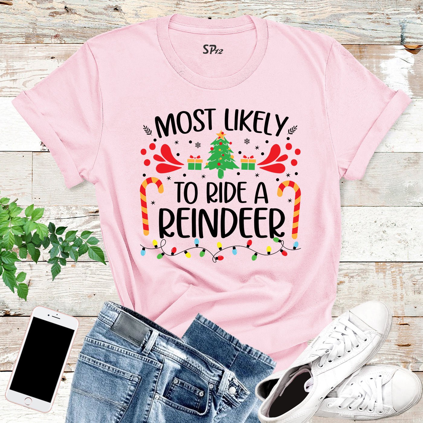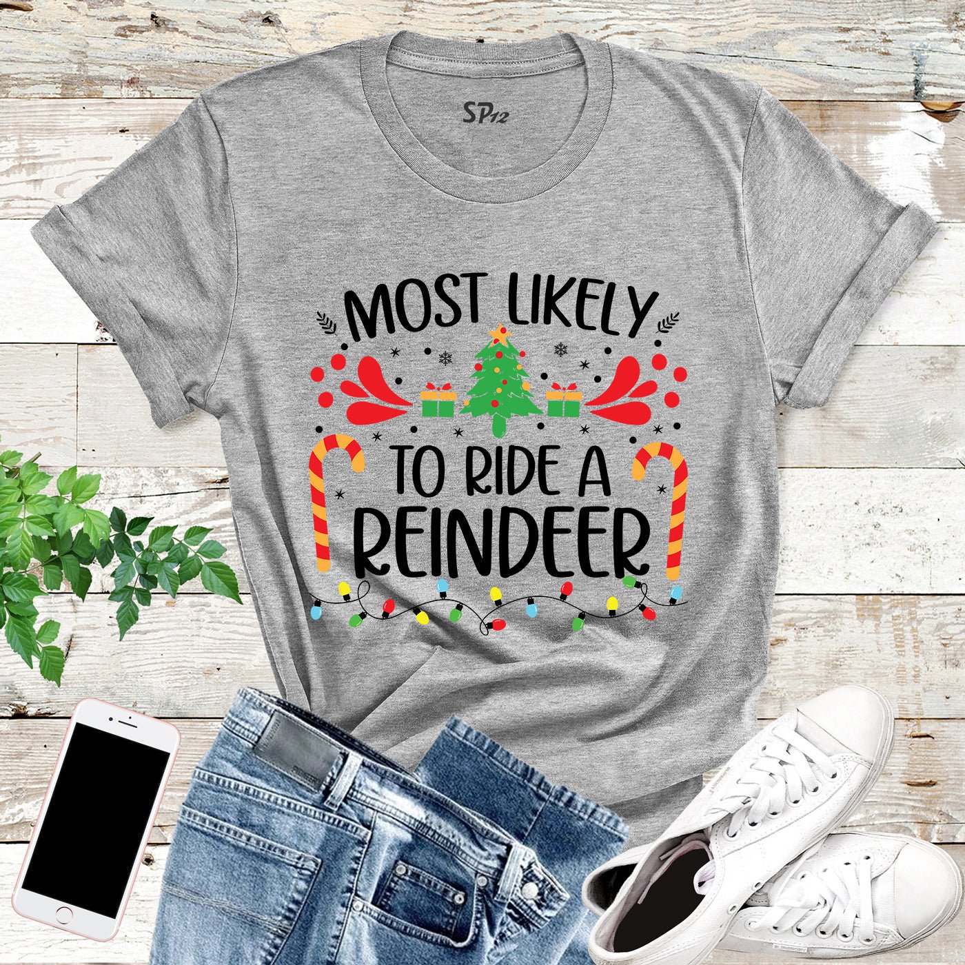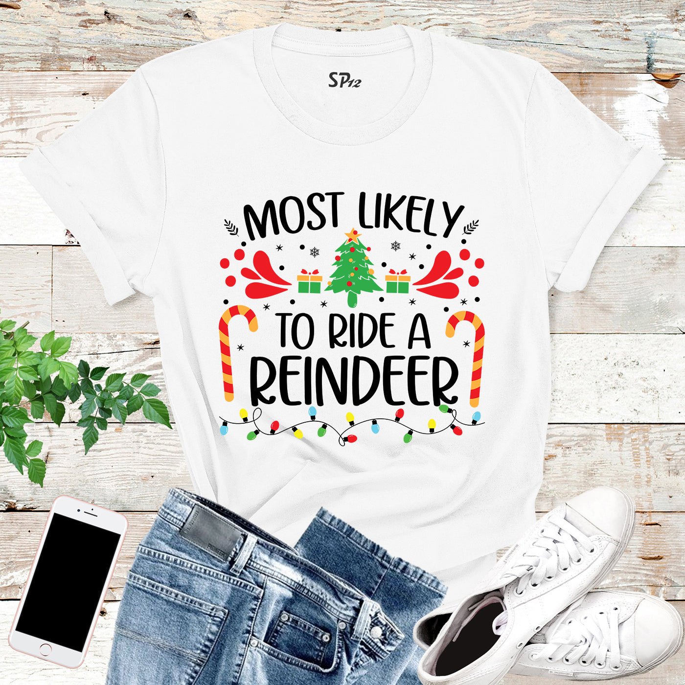 Most Likely to Ride a Reindeer Christmas T Shirt