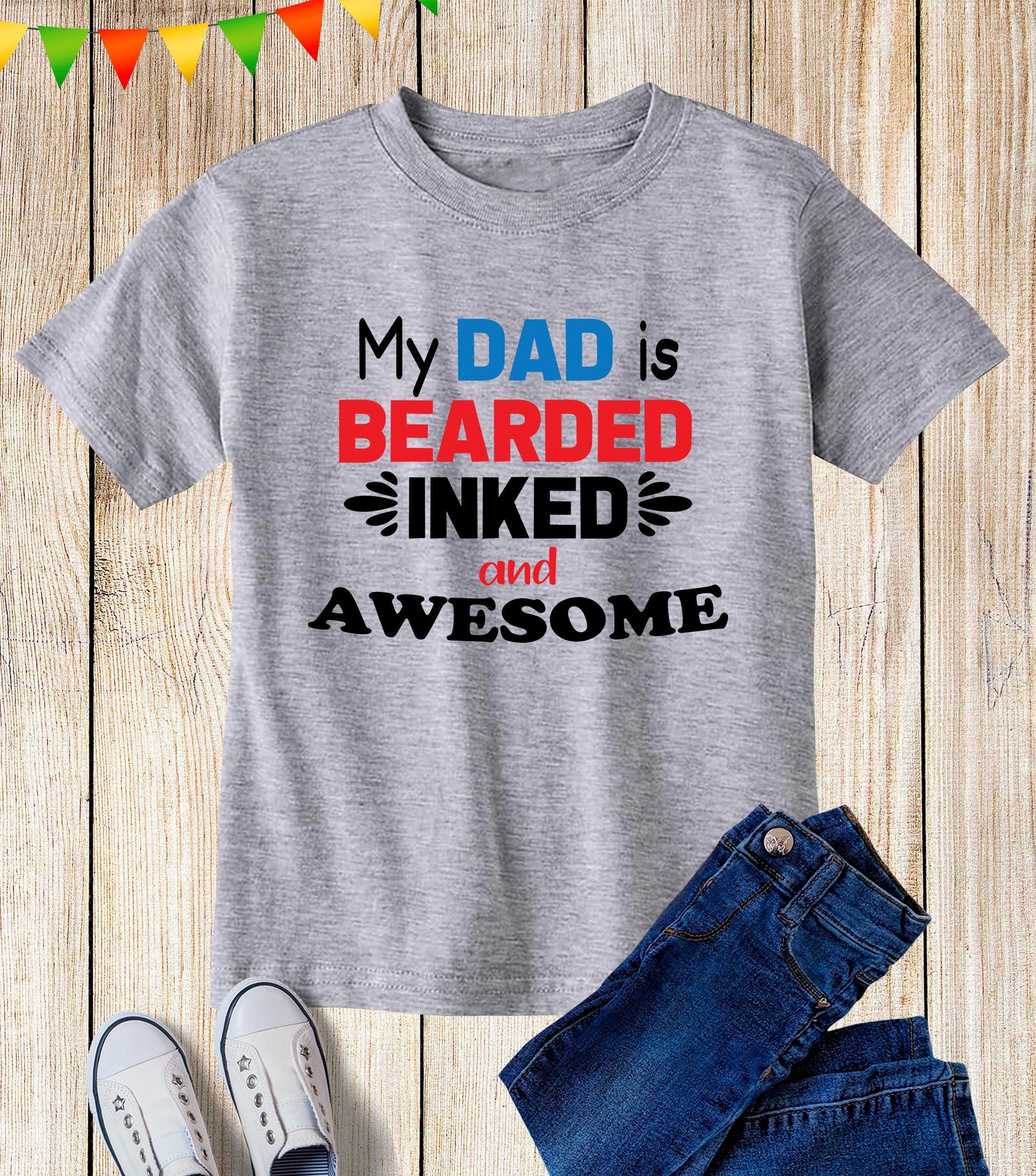 This My Dad is Bearded Inked And Awesome Toddler T Shirt is perfect for little ones who have dads with beards, tattoos, and a whole lot of awesomeness. Made with high-quality materials, this shirt is both comfortable and stylish. Let your child proudly show off their love for their bearded, inked, and awesome dad with this shirt.