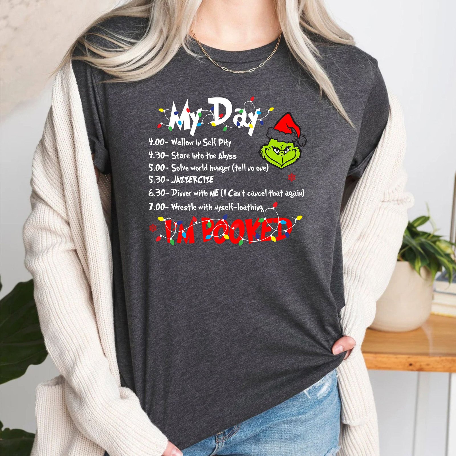 SKU: 6943939559522-my-day-im-booked-christmas-grinch-t-shirt Category: Tag: