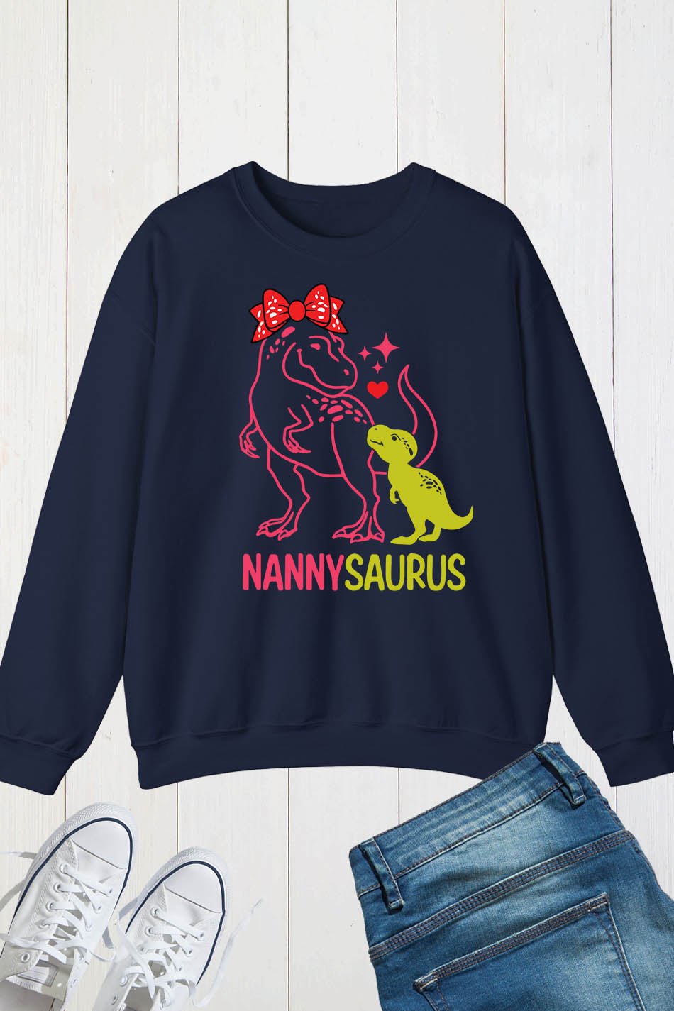 Introducing the Nannysaurus Dinosaur Nanny Sweatshirt – the perfect top for any dino-loving caregiver. Made with comfortable and durable fabric, this sweatshirt will keep you warm while showcasing your love for nannying and dinosaurs. Perfect for casual wear or gifting to your favorite nanny.
