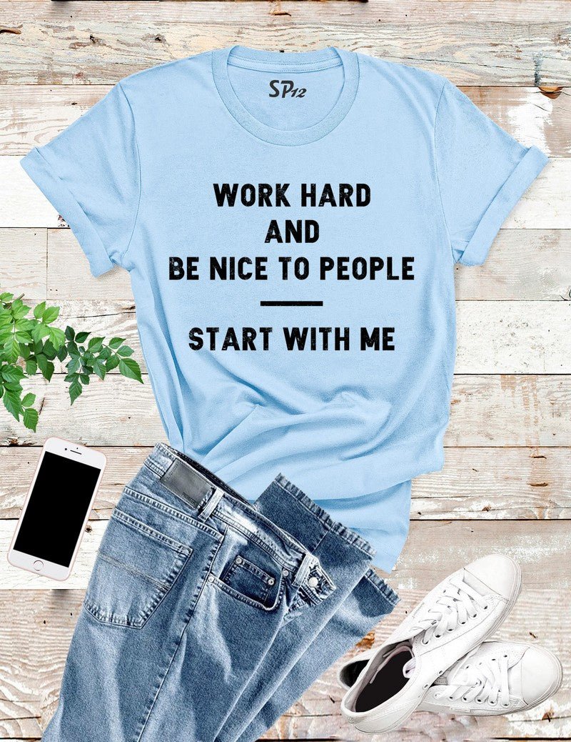 Work Hard And Be Nice To People T Shirt is printed with the message Work Hard.This be kind t shirt message is to express the kindness in the style way. Spread the important message of humanity with this stylish trendy comfy short sleeve soft cotton quality printed tee shirts.