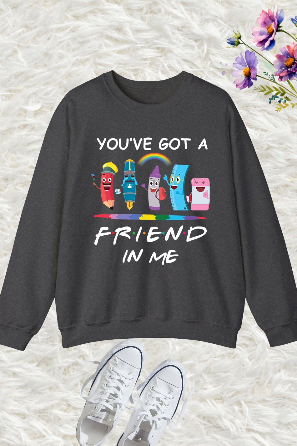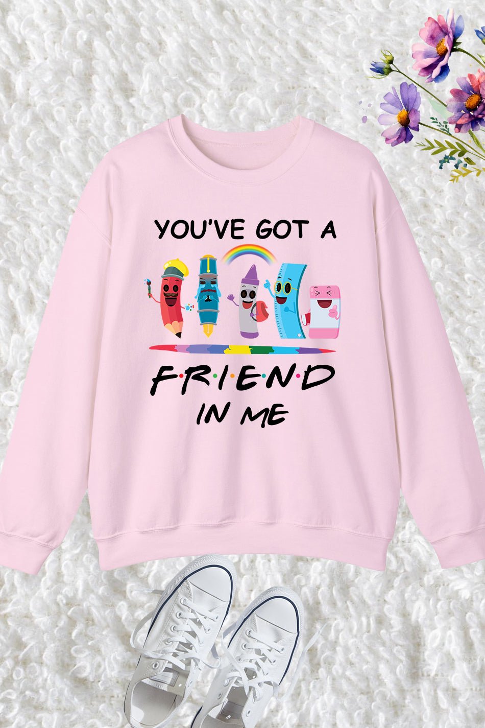 Stay cozy and feel the love with our You’ve Got A Friend In Me Sweatshirt. Made from high-quality materials, this sweatshirt is perfect for cooler days and features our heartwarming slogan. Show off your friendship and spread positivity while staying comfortable.